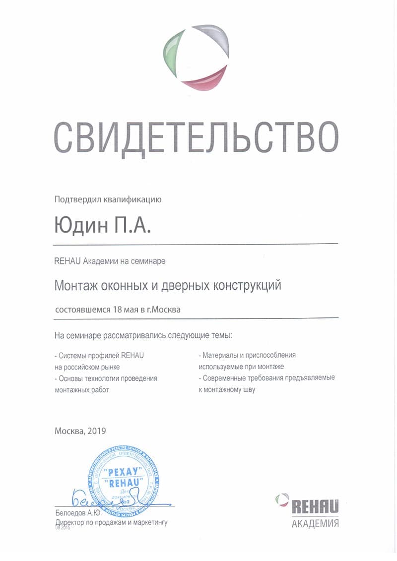 В «Умных окнах» каждая бригада обучена и аттестована немецким концерном REHAU, все мастера работают в штате компании более 5 лет.